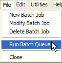 Show Batch Queue displays the list of batches. The queue is set up and scheduled here. Run Batch Queue runs the list of batches previously scheduled.