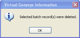 Click Yes or No. To cancel the deletion, click No. To proceed with the deletion, click Yes. When the batch is deleted a message confirms the action taken.